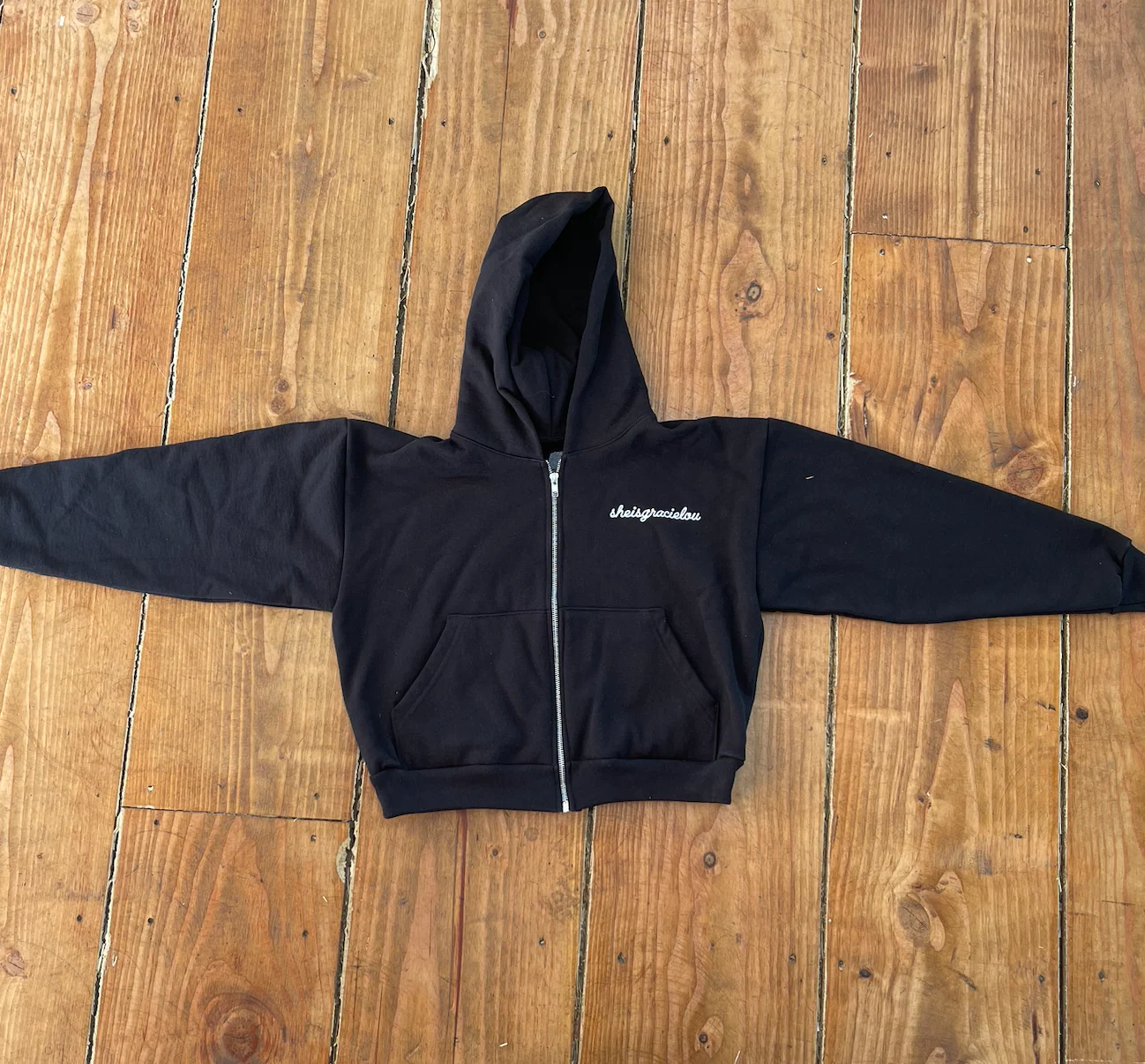 Say hello to your new go-to hoodie our Black Cowgirl Era Cropped Hoodie! Featuring a boxy, cropped design with the sheisgracielou logo on the front and "Cowgirl Era" in white on the back, this heavyweight fleece zip-up sweatshirt is perfect for any cowgirl looking to make a statement.