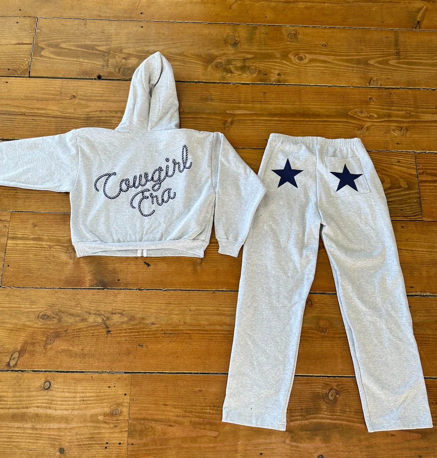 Say hello to your new favorite sweatpants! Our Gray Star Sweatpants are wide, straight-leg, and made from heavyweight fleece to keep you cozy while looking chic. Perfect for everyday wear, these sweatpants pair beautifully with our "Cowgirl Era" Cropped Zip-Up Hoodie or White Star Tank for that full cowgirl vibe.
